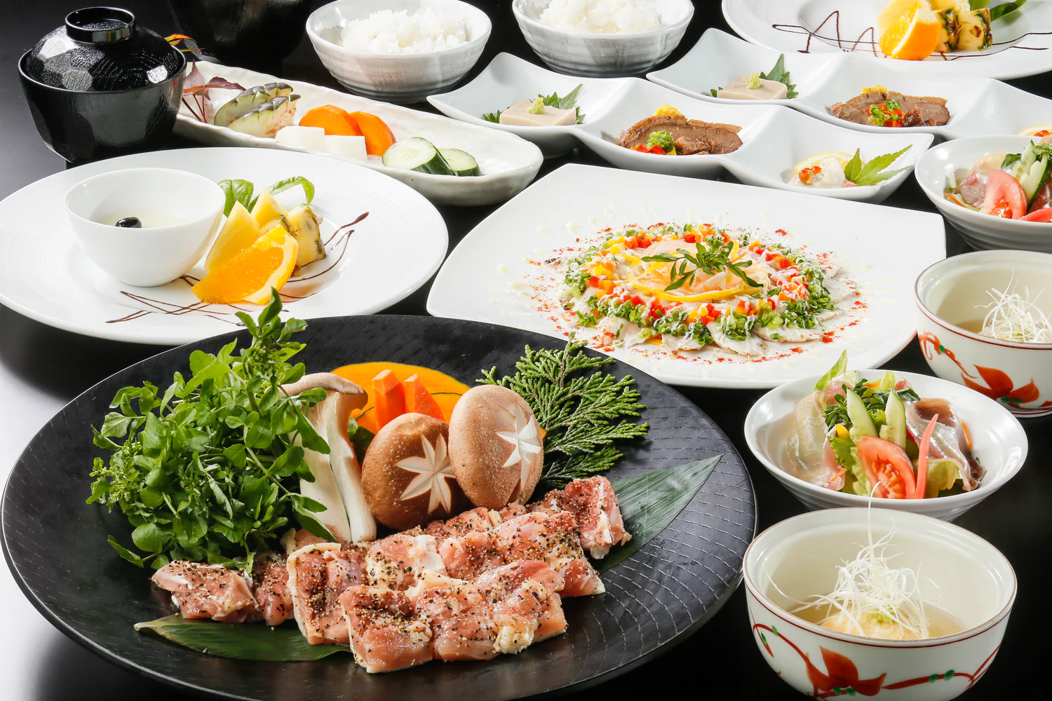 炭火で焼かれた高原の季節野菜、地元のブランド牛や、豊後水道から直送される新鮮な魚による懐石コースなどを味わえる無相荘、ミシュランガイド熊本・大分2018特別版にて4レッドパビリオン(4つ星+)と評価された、無相荘の味をご家庭でお楽しみいただけます。